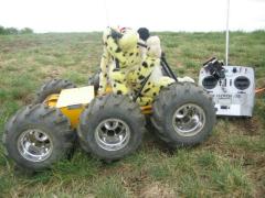 L'engin se pilote soit comme un tank, 1 manche par variateur, soit comme une voiture en utilisant un mixage. |
